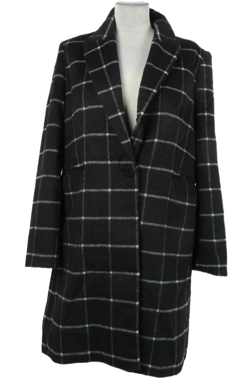 Dámsky čierny kockovaný flaušový kabát Primark