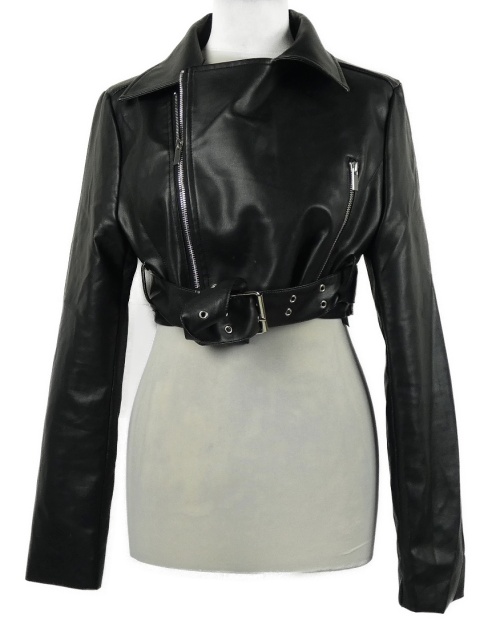 Dámsky čierny koženkový crop krivák s opaskom PrettyLittle Thing