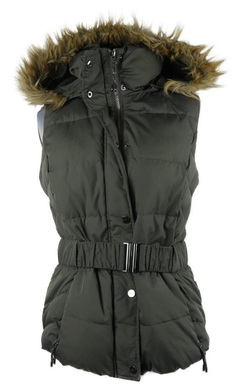 Dámska tmavosivá šušťáková zateplená vesta s opaskom a kapucňou Esprit