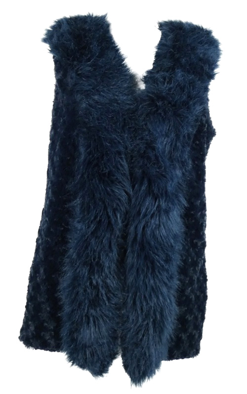 Dámska tmavomodrá kožušinová vesta s kožúškom