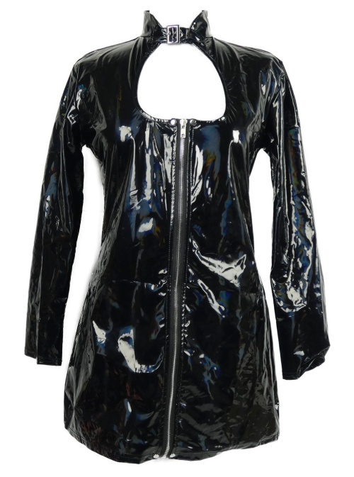 Dámské černé latexové propínací minišaty s prestrihom