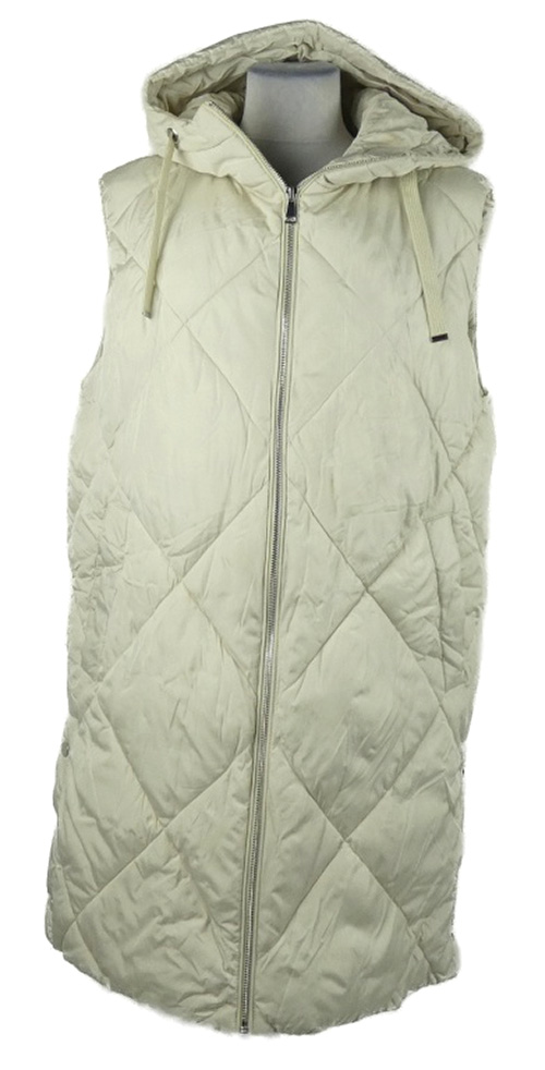 Dámska béžová šušťáková prešívaná zateplená maxi vesta s kapucňou Primark