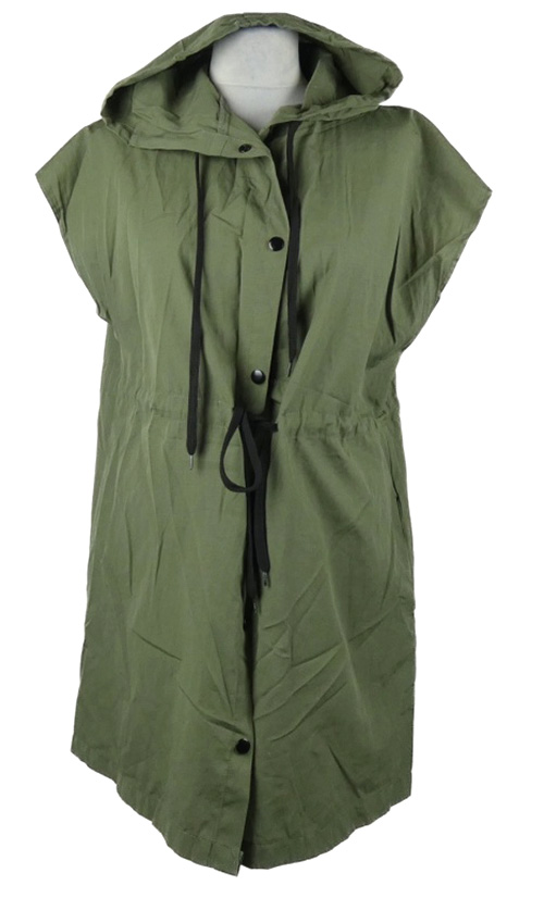 Dámska khaki šušťáková vesta s nápisom a kapucňou