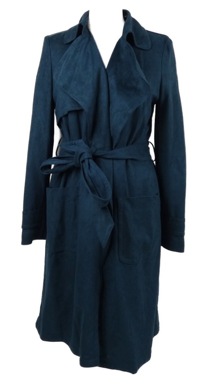 Dámsky petrolejový semišový kabátový cardigán s opaskom F&F