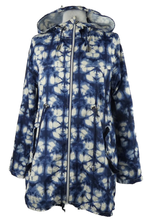 Dámska tmavomodro-biela vzorovaná šušťáková parka s kapucňou Atmosphere