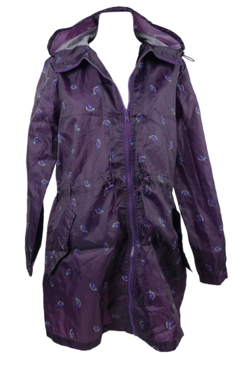Dámsky fialový šušťákový kabát s vtáčky a kapucňou George