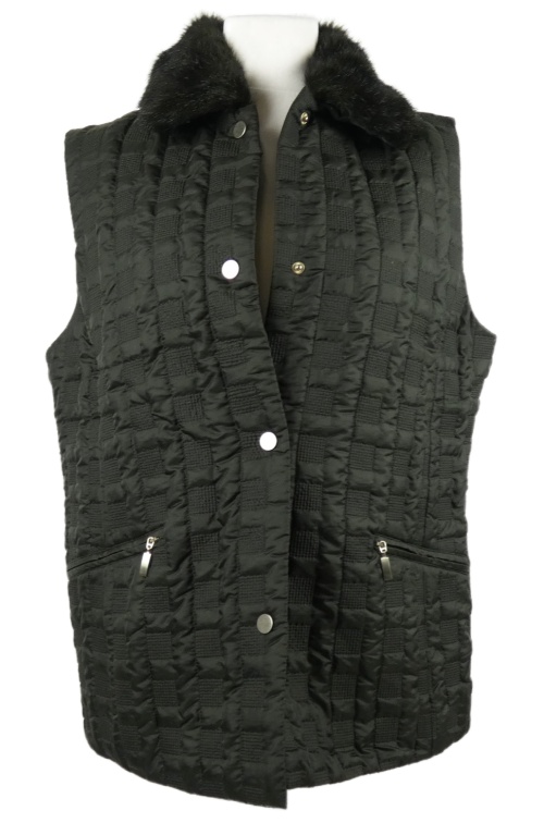 Dámska čierna prešívaná zateplená vesta s kožúškom Gerry Weber