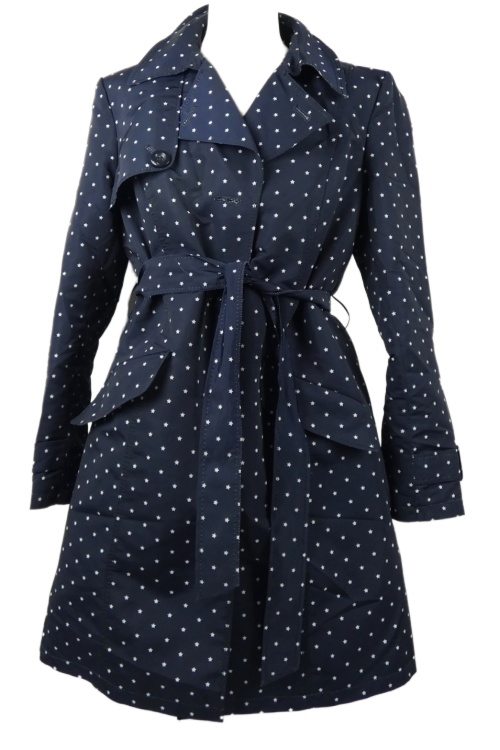 Dámsky tmavomodrý hviezdičkovaný šušťákový jarný kabát s opaskom M&S