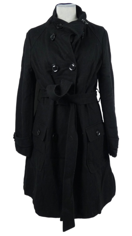 Dámsky čierny vlnený kabát s opaskom Atmosphere