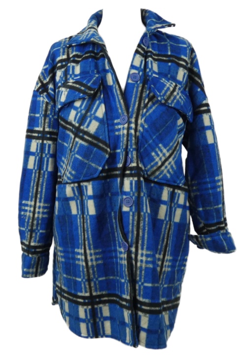 Dámska modro-béžovo-čierna kockovaná fleecová košeľová bunda