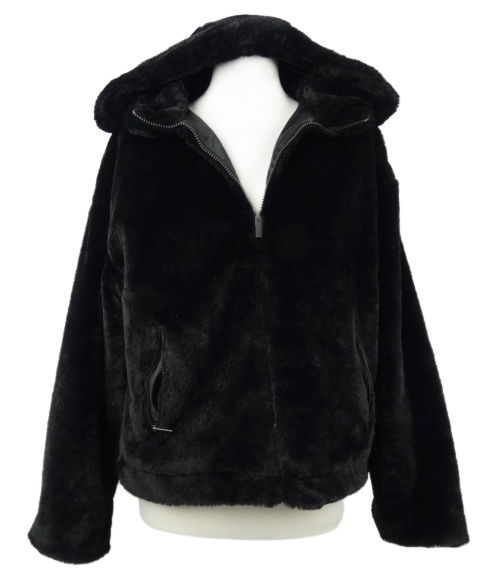 Dámska čierna kožušinová crop bunda s kapucňou Primark