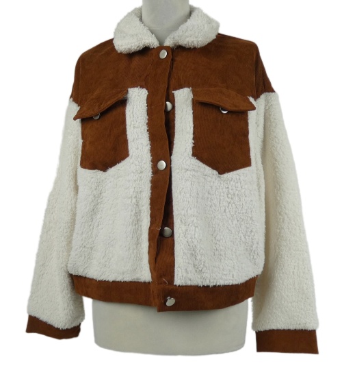 Dámska bielo-hrdzavá huňato/manšestrová košeľová bunda
