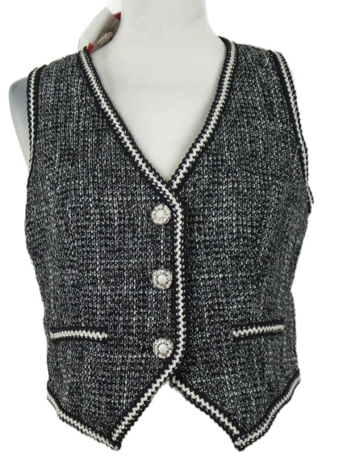 Nové - Dámska čierno-biela melírovaná pletená crop vesta Cider