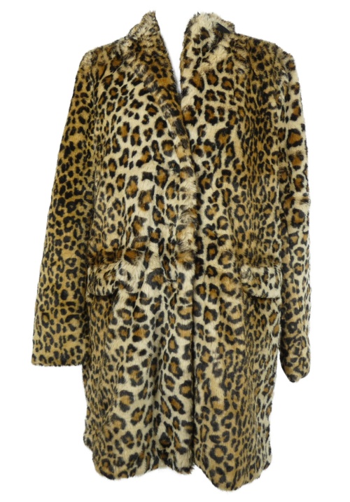 Dámsky béžovo-čierny vzorovaný kožušinový kabát Zara