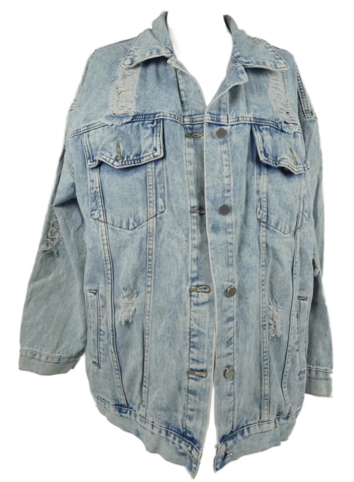 Dámska svetlomodrá rifľová oversized bunda s vyšúchaním Shein