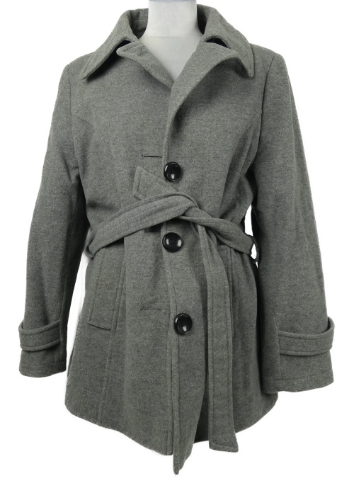 Dámsky sivý vlnený kabát s opaskom