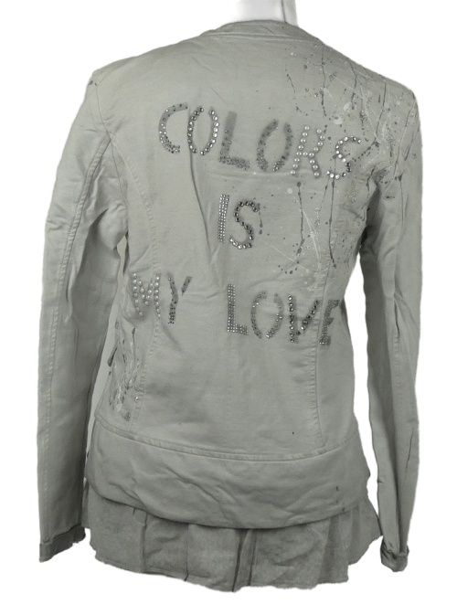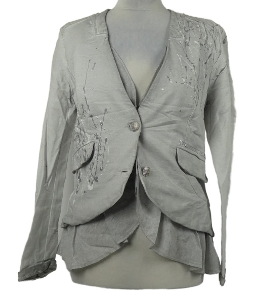 Dámsky sivý teplákový vrstvený kabátek potlačou a kamienky