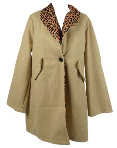 Dámsky béžovo-vzorovaný flaušový kabát