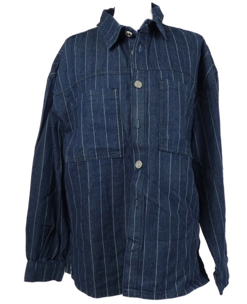 Nové - Dámska tmavomodrá prúžkovaná košeľová bunda Boohoo
