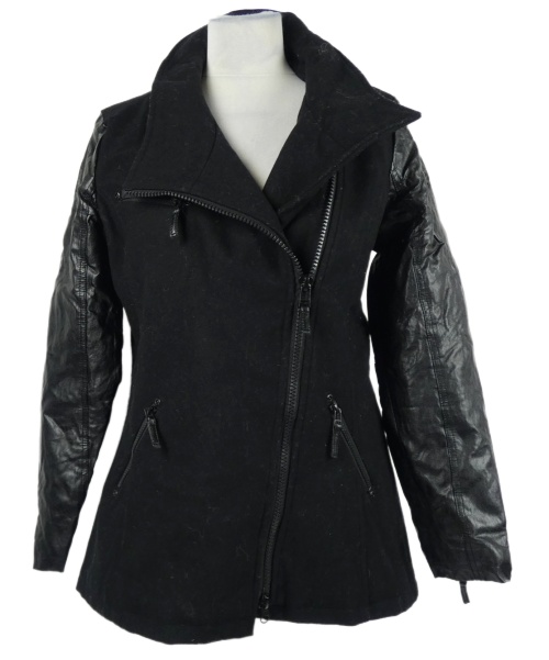 Dámsky čierny vlněno/koženkový zateplený kabát Gipsy