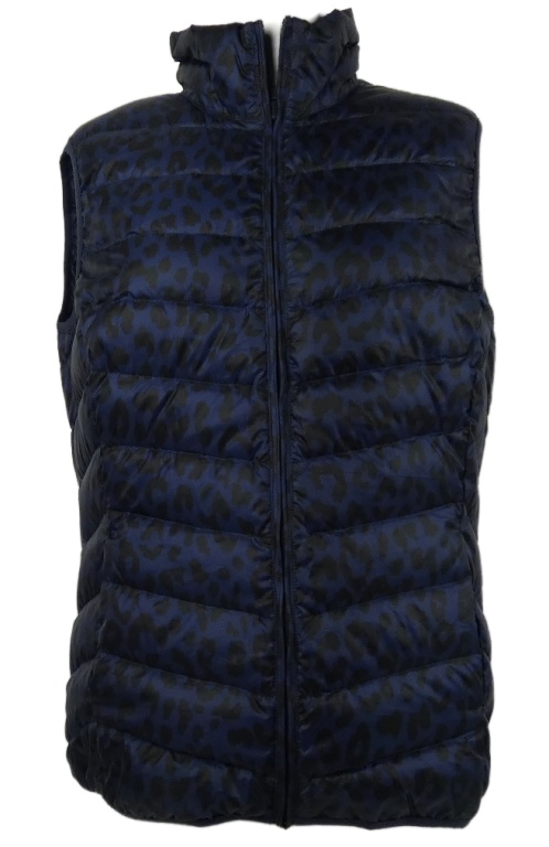 Dámska čierno-tmavomodrá vzorovaná šušťáková zateplená péřová vesta