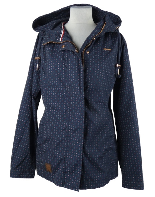 Dámska tmavomodrá šušťáková jarná bunda s kotvami a kapucňou Aiki