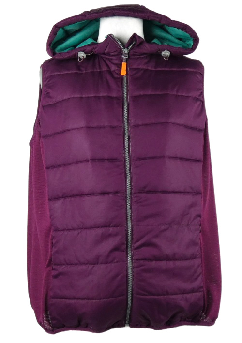 Dámska purpurová šušťáková športová zateplená vesta s kapucňou