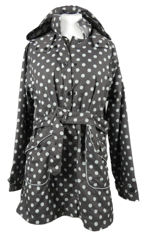 Dámsky hnedý bodkovaný šušťákový jesenný kabát s opaskom a kapucňou Gelert