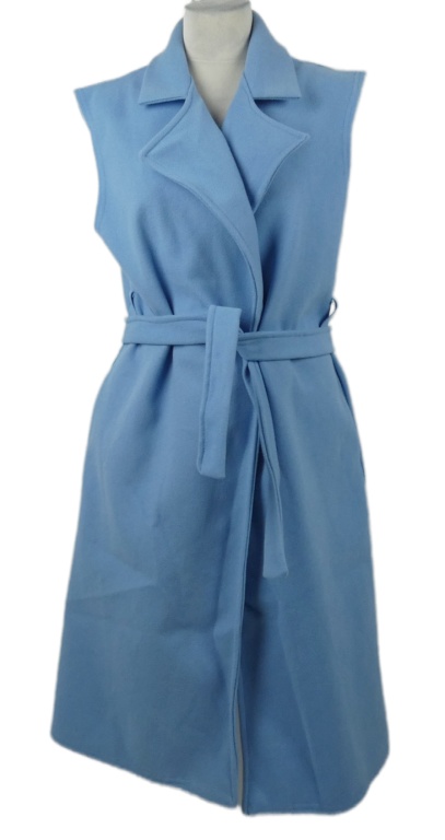 Dámska svetlomodrá flaušová dlhá vesta s opaskom