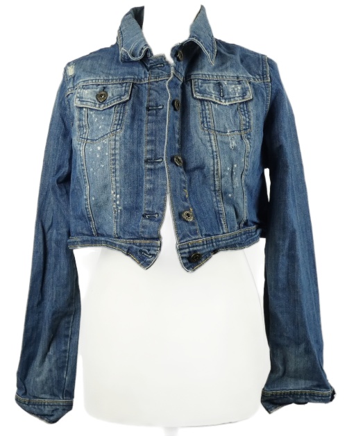 Dámska modrá rifľová crop bunda s vyšúchaním