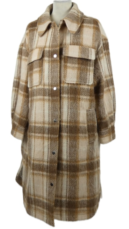 Dámsky svetloružová -hnedý kockovaný vlnený kabát M&S
