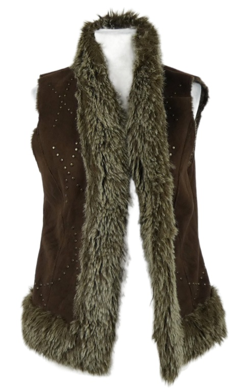 Dámska hnedá semišová vesta s cvokmi a kožúškom Papaya