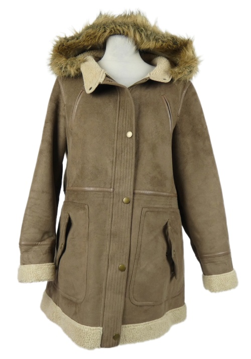 Dámsky béžový semišový zimný kabát s kapucňou M&S