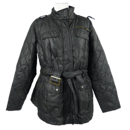 Dámska čierna potiahnuté á prešívaná zateplená bunda s opaskom M&S