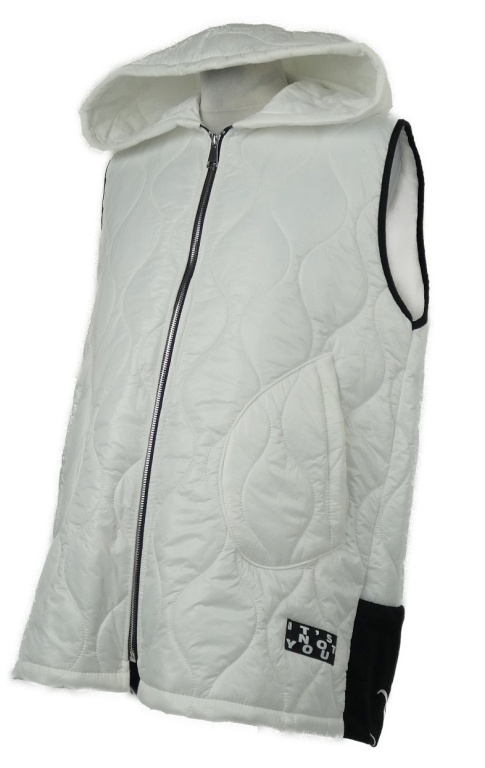 Dámska biela šušťáková prešívaná zateplená vesta s kapucňou