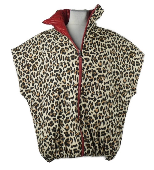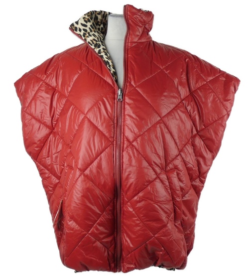 Nové - Dámska červená/vzorovaná šušťáková zateplená vesta
