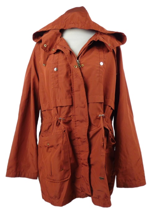 Dámsky tehlový šušťákový jarný kabát s kapucňou Peacocks