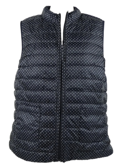 Dámska tmavomodrá bodkovaná šušťáková péřová lehce zateplená vesta Betty Barclay