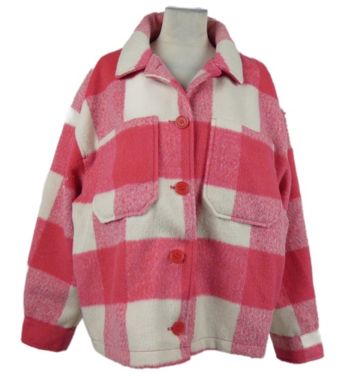 Dámska ružovo-biela kockovaná flaušová košeľová bunda Primark