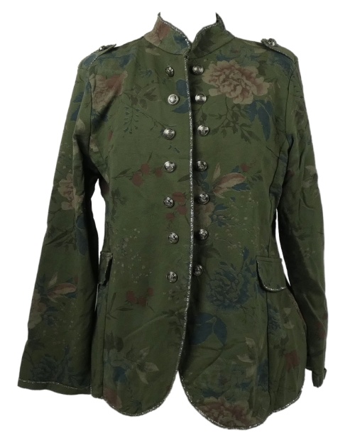 Dámsky khaki teplákový kvetovaný cardigán s gombíky