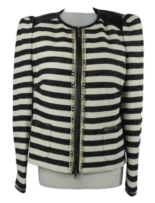 Dámska čierno-smotanová pruhovaná trblietavá bunda s retiazky