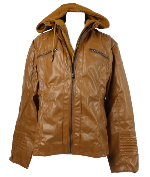 Dámska skořicová koženková bunda s kapucňou