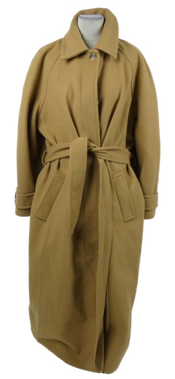 Dámsky béžový flaušový dlhý kabát s opaskom Tu