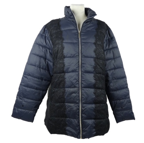 Dámska tmavomodrá šušťáková zimná bunda s čiernou čipkou Sarah Kern