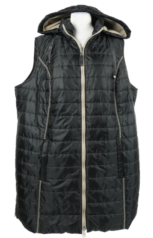 Dámska čierna šušťáková zateplená vesta s kapucí vel. 54