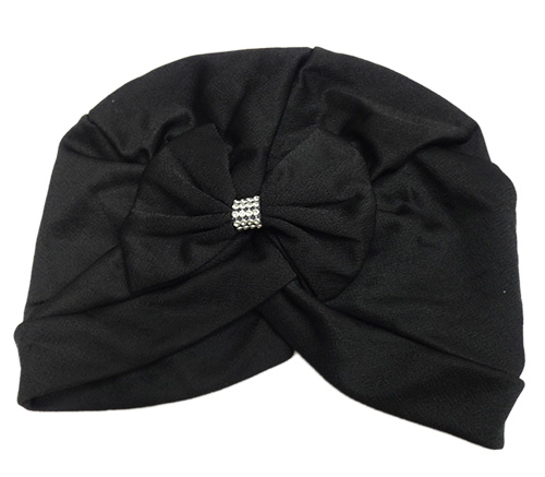 Dámska čierna turbanová čapica s mašlou