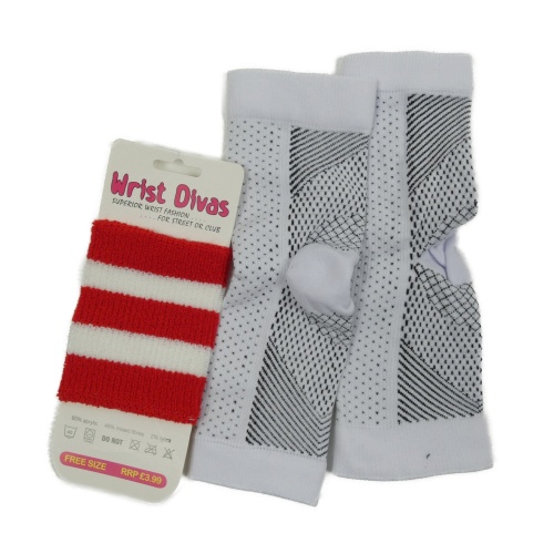 Nové - 2set - Dámské bílé kompresní bezprstové ponožky + pruhované potítko na ruku Wrist Divas