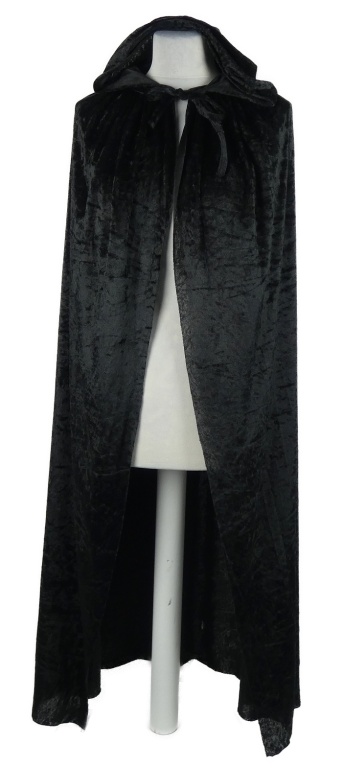 Kostým - Dámský černý sametový plášť s kapucňou