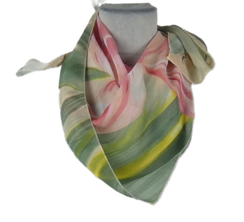 Dámský růžovo-zelený květovaný šifonový šátek
