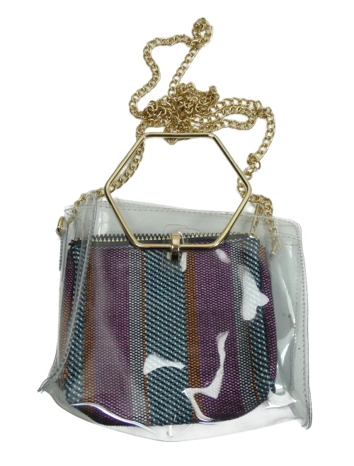 Dámska bielo-farebná vzorovaná crossbody kabelka s řetízkovým popruhem